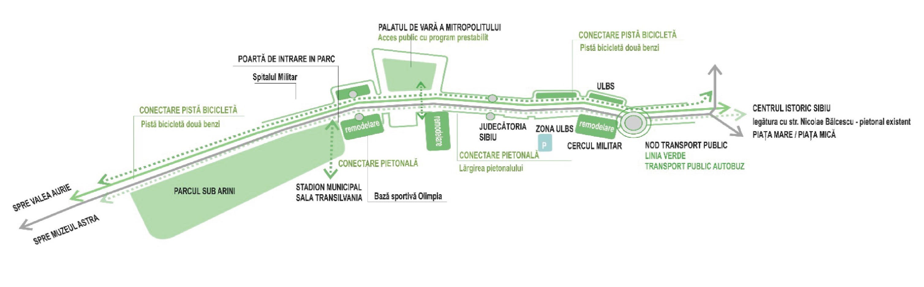 Viitoarea promenadă ce leagă centrul orașului Sibiu de parcul Sub Arini (cel mai mare parc al orașului) ar trebui să ofere confort și siguranță pietonilor în deplasarea pe bulevardul Victoriei și să răspundă nevoii de recreere a sibienilor, deschizând totodată posibilitatea de a avea în viitorul apropiat un culoar verde, prietenos deplasărilor nemotorizate, care să străbată întreg orașul, de la Gara CFR până în Muzeul Astra.