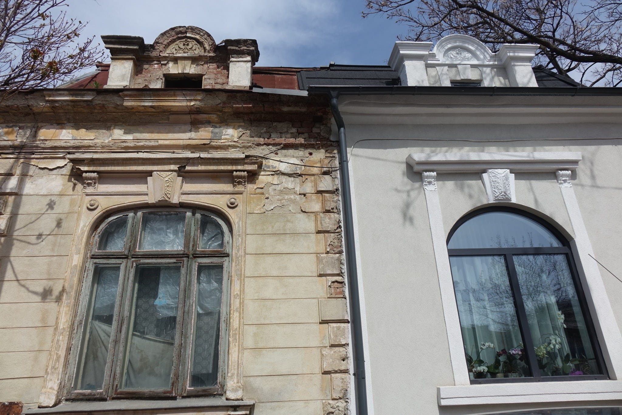 De ce trebuie să cunoaștem și să înțelegem tehnicile de construire și finisare și de ce este important să lucrăm cu specialiști? Două case surori, după renovare una s-a schimbat radical ca imagine, și deși a încercat să imite estetica veche, renovarea este total nepotrivită ca textură, forme, culori. Detalii la Pro Patrimonio.